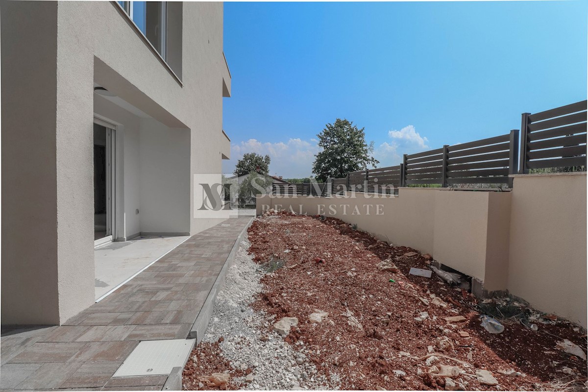 Poreč, Umgebung, Modern eingerichtete Wohnung im Erdgeschoss mit Garten Weniger als einen Kilometer vom Meer entfernt, in der Nähe aller notwendigen Einrichtungen, befindet sich diese komplett möblierte Wohnung in einem neuen Gebäude. Die Wohnung besteh