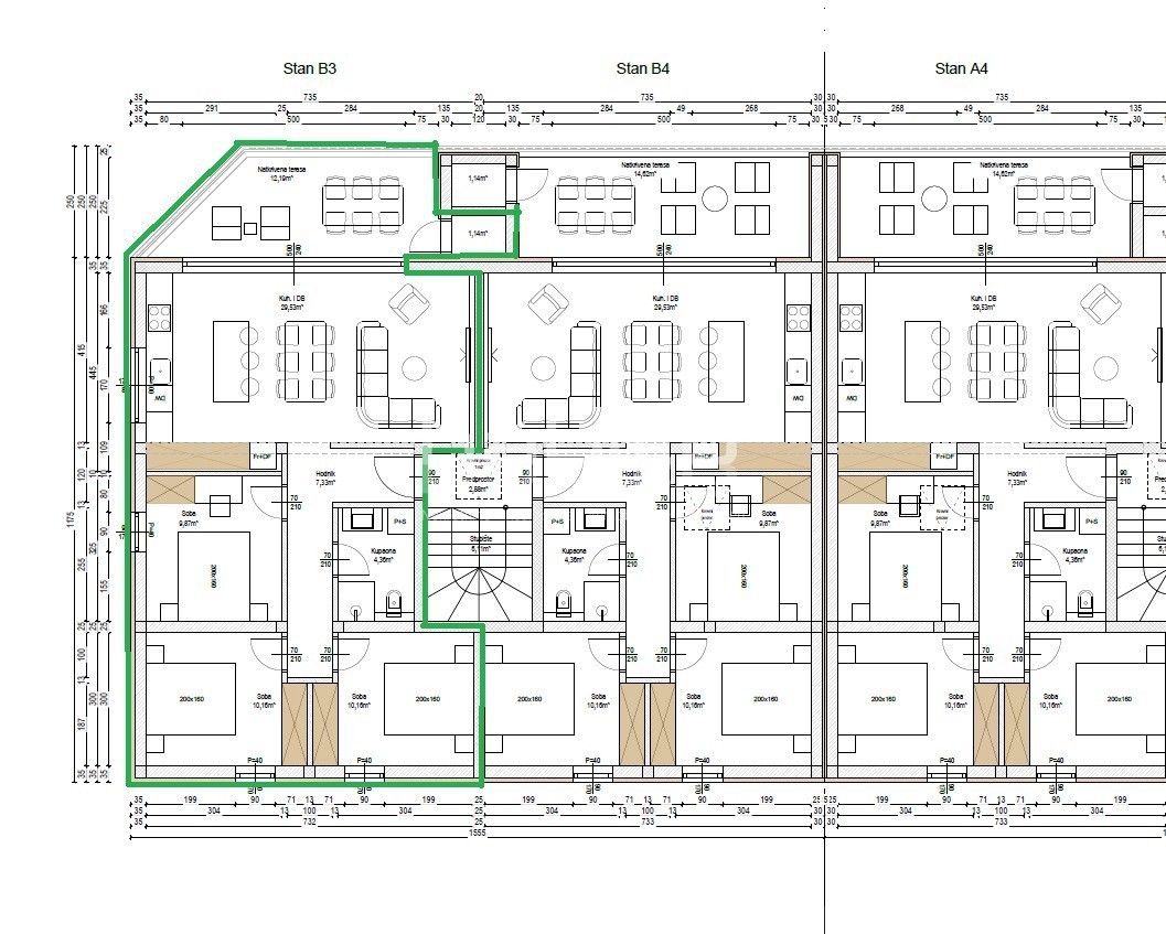 Istra, Poreč, Tar – Wohnung im 1. Stock, 78 m² In ruhiger Lage, am Rande eines Pinienwaldes, nur 500 m vom Ortszentrum entfernt, befindet sich dieses wunderschöne Gebäude moderner Architektur. Zum Verkauf steht noch eine Wohnung! Die 78 m² große Wohnun