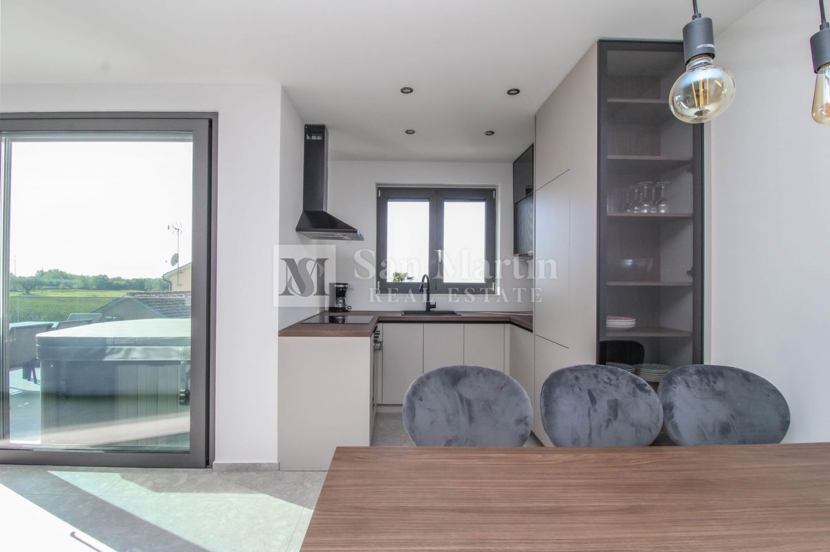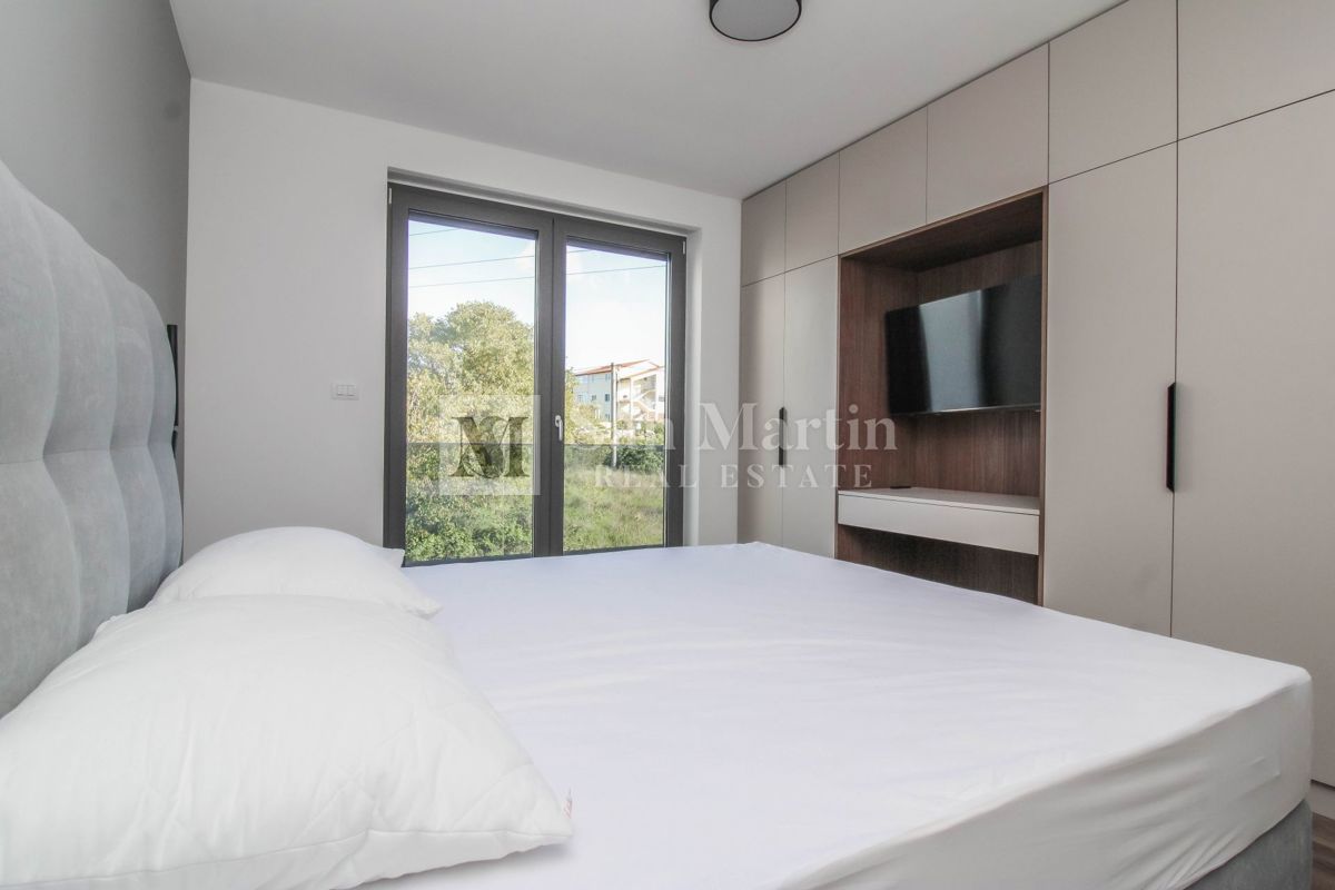 Poreč, Umgebung - Wohnung im 1. Stock eines Neubaus mit wunderschönem Blick auf das Meer In der Nähe der Stadt Poreč und des Meeres steht eine moderne Wohnung in einem neuen Gebäude mit wunderschönem Blick auf das Meer und reichhaltiger Ausstattung zum V