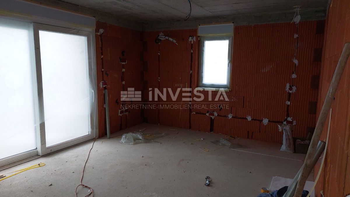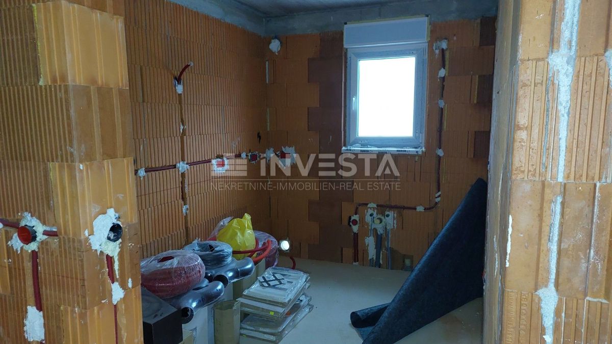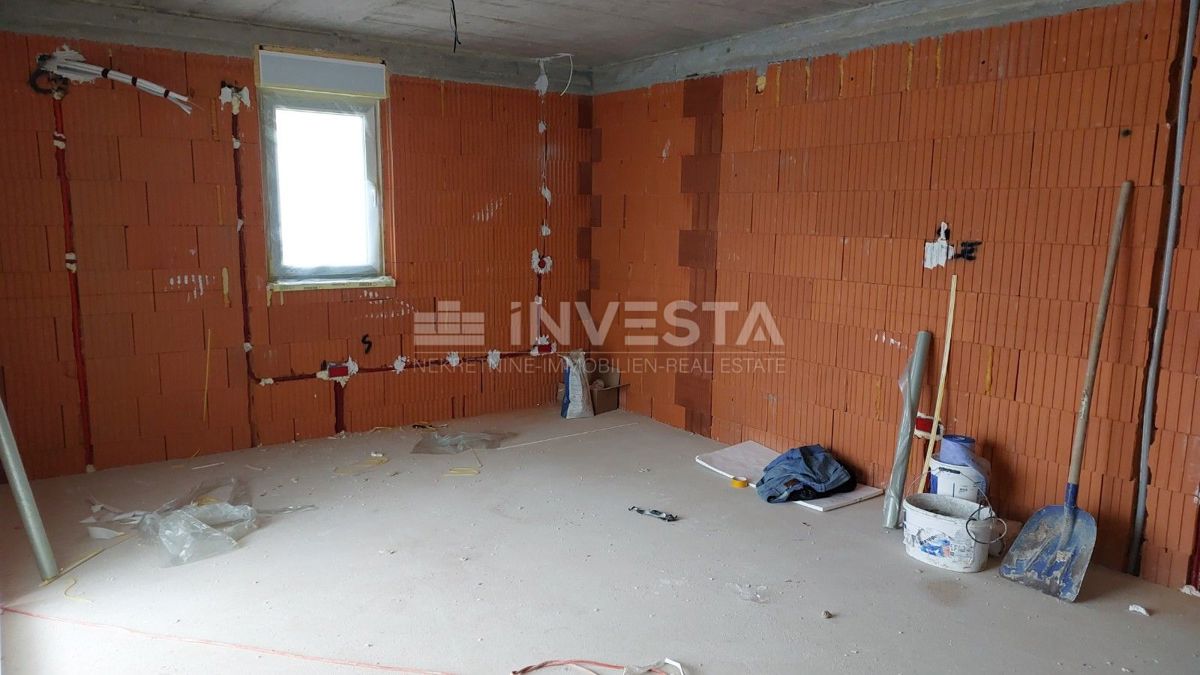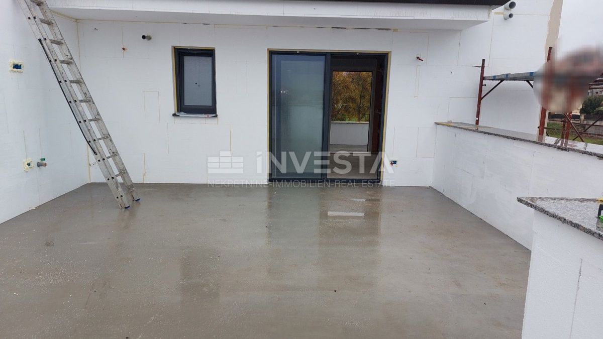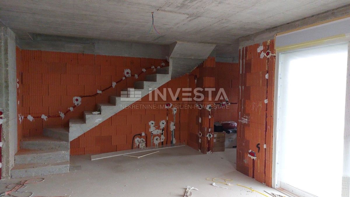 In einer kleinen Stadt in der Nähe von Poreč wird eine zweigeschossige Wohnung mit einer Fläche von 122,35 m² verkauft. Im ersten Stock der Wohnung befinden sich ein Wohnzimmer mit Küche und Essbereich, eine große Terrasse, zwei Schlafzimmer, ein Badezim