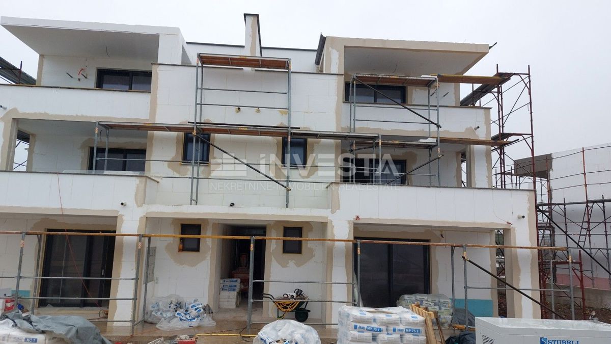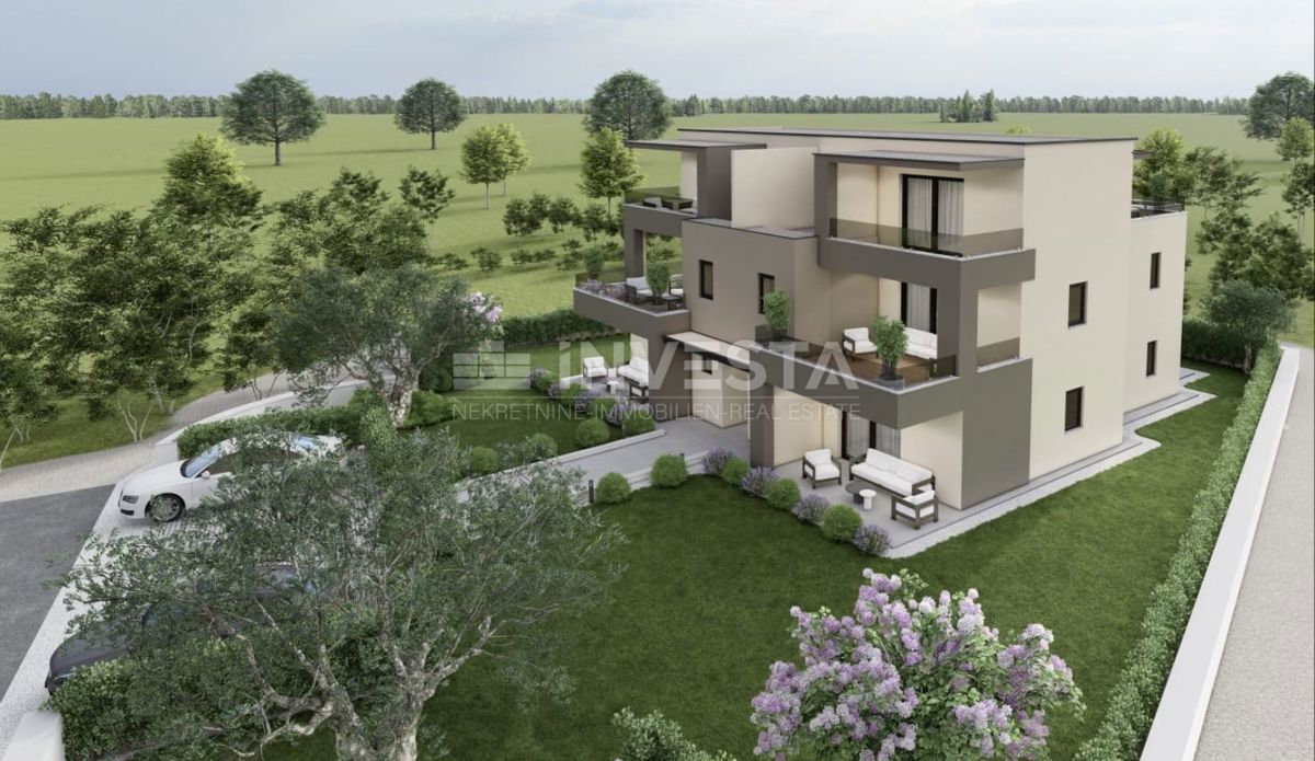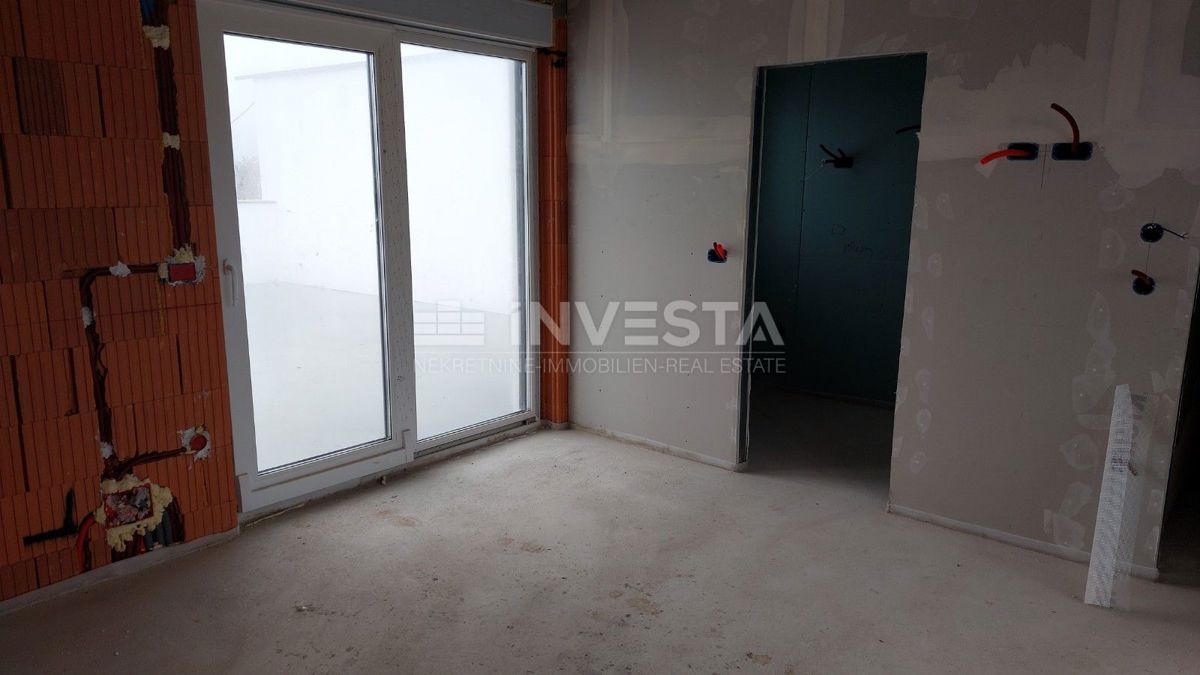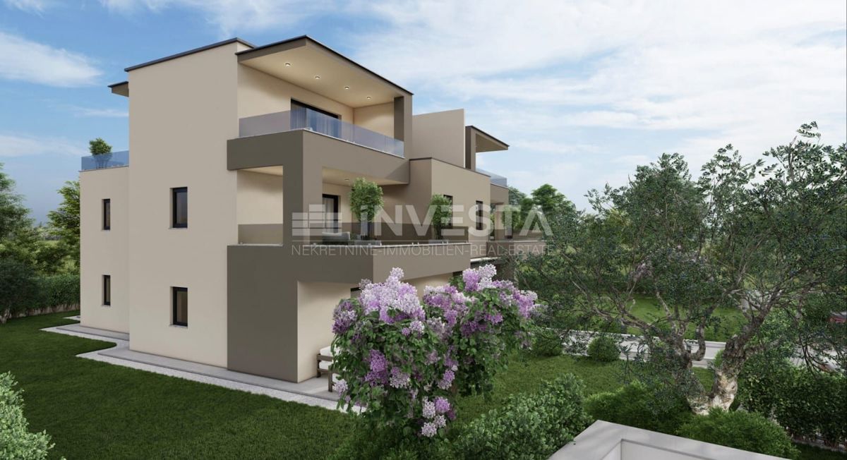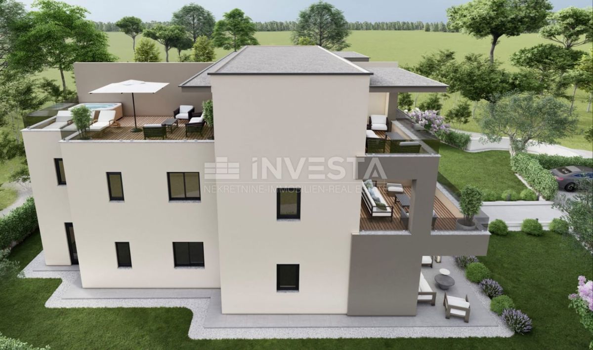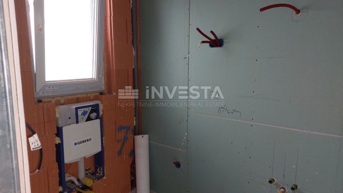 In einer kleinen Stadt in der Nähe von Poreč wird eine zweigeschossige Wohnung mit einer Fläche von 122,35 m² verkauft. Im ersten Stock der Wohnung befinden sich ein Wohnzimmer mit Küche und Essbereich, eine große Terrasse, zwei Schlafzimmer, ein Badezim