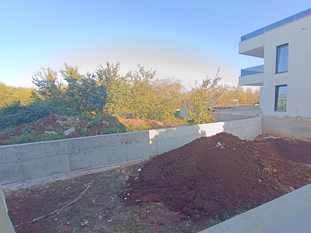 Poreč, Umgebung, Wohnung im Erdgeschoss mit zwei Schlafzimmern und einem großen Garten In ruhiger Lage, nur 5 km vom Zentrum von Poreč und dem Meer entfernt, entsteht ein modernes Wohngebäude mit neun Wohneinheiten, das zukünftigen Mietern Privatsphäre