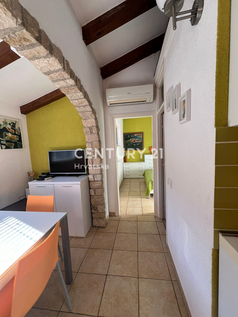 POREČ, ČERVAR PORAT, KOMPLETT RENOVIERTE WOHNUNG 20 METER VOM MEER ENTFERNT Wohnung zum Verkauf in Poreč, Dorf Červar-Porat, Fläche 38 m2. Diese 1,5-Zimmer-Wohnung (1BR+DB) befindet sich im dritten Stock des Gebäudes und ist somit eine ideale Wahl für