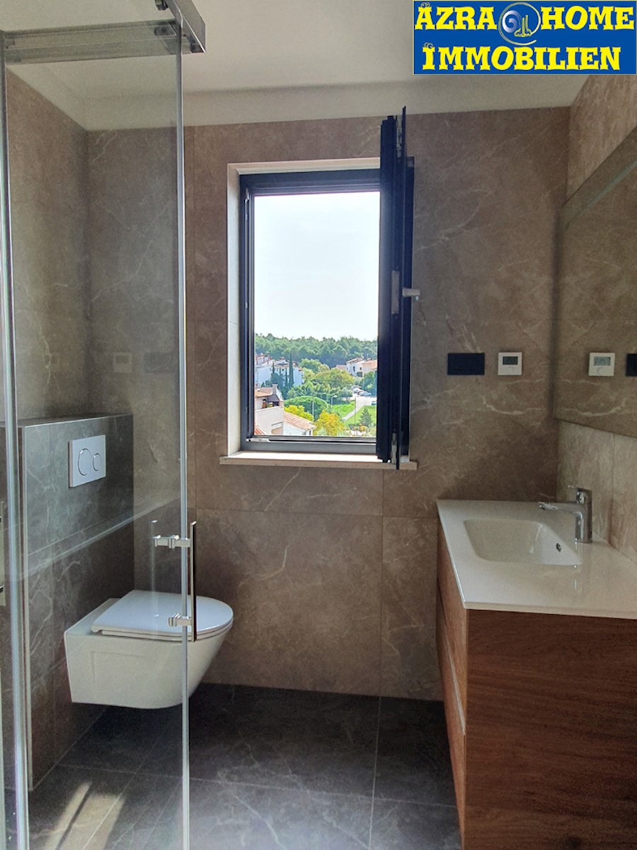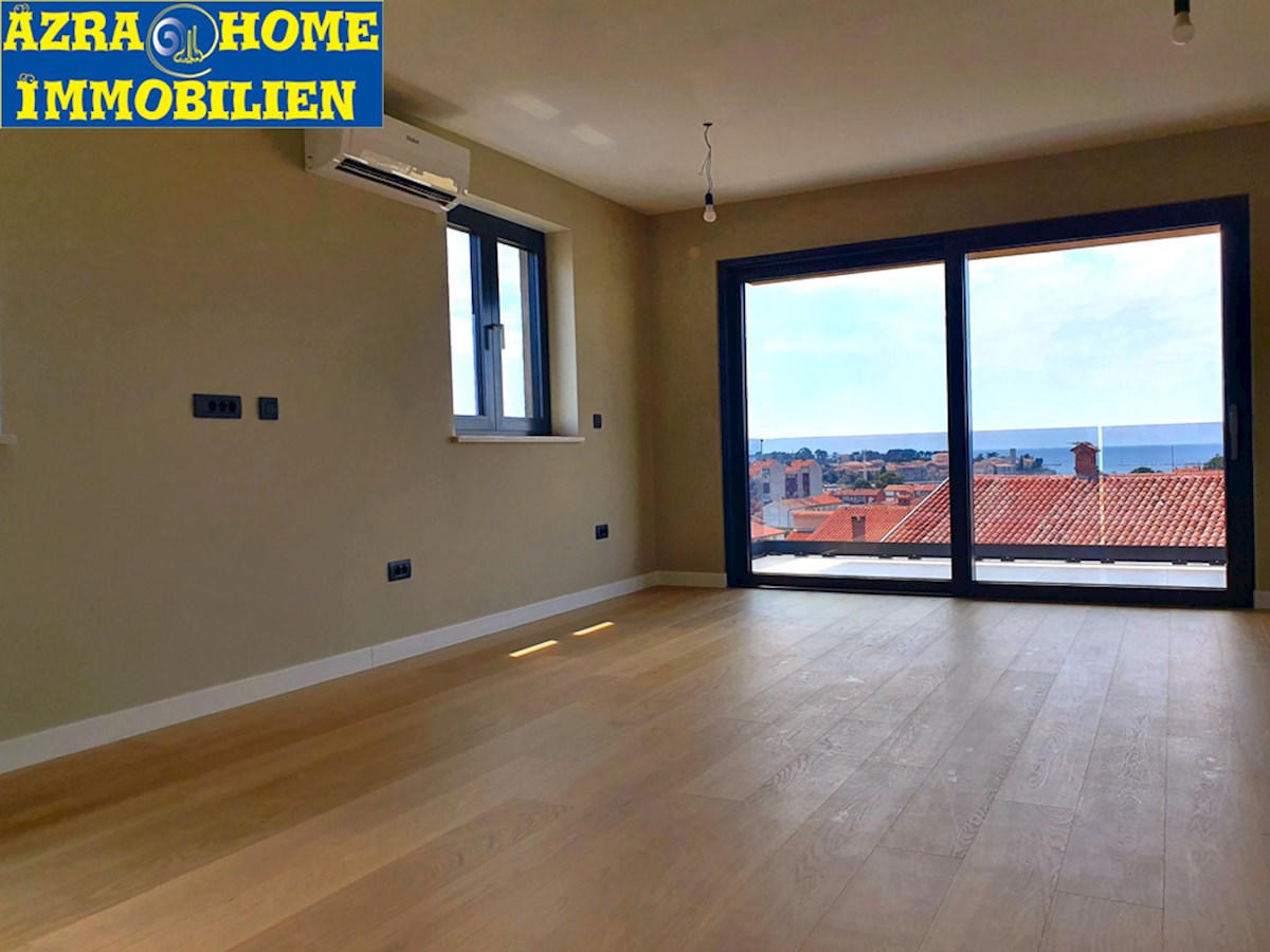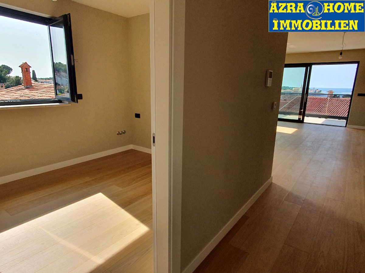 Diese helle und luxuriöse Penthouse-Wohnung befindet sich im erweiterten Zentrum von Poreč und bietet einen einzigartigen Blick auf die Altstadt und das Meer. Sie erstreckt sich über beeindruckende 236 m2. Im Untergeschoss befinden sich Garage, Lagerraum