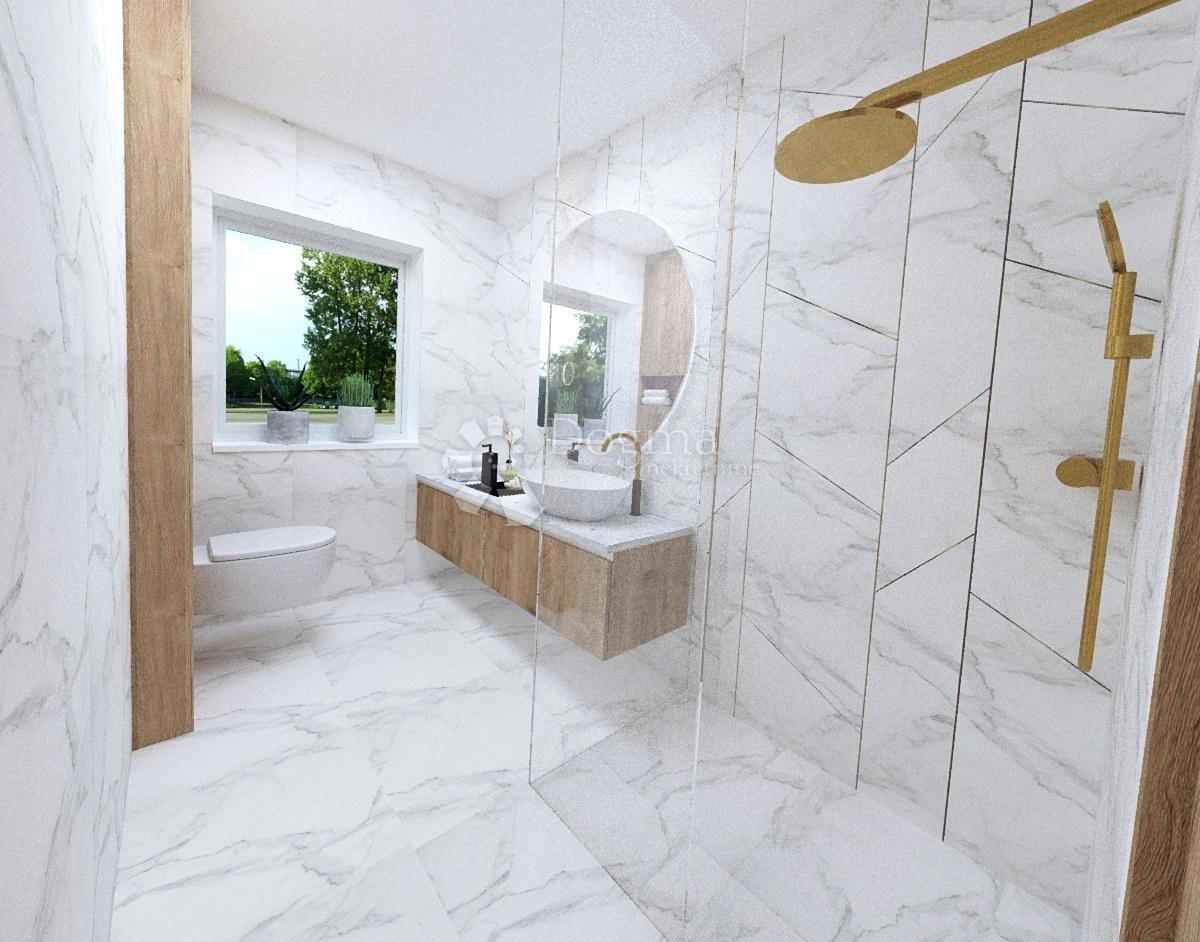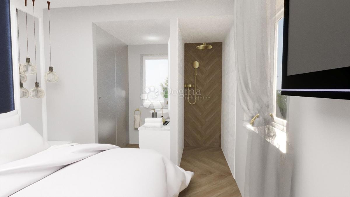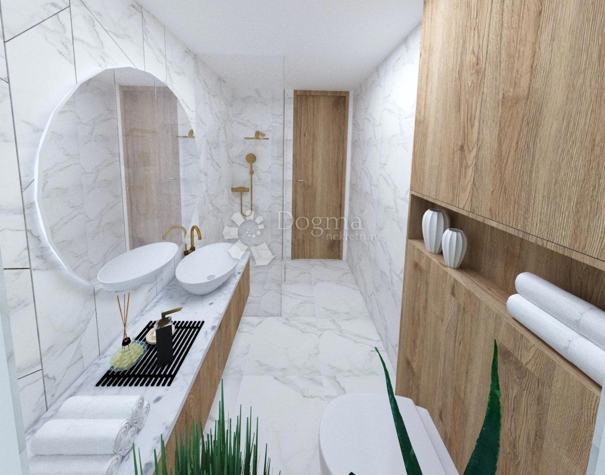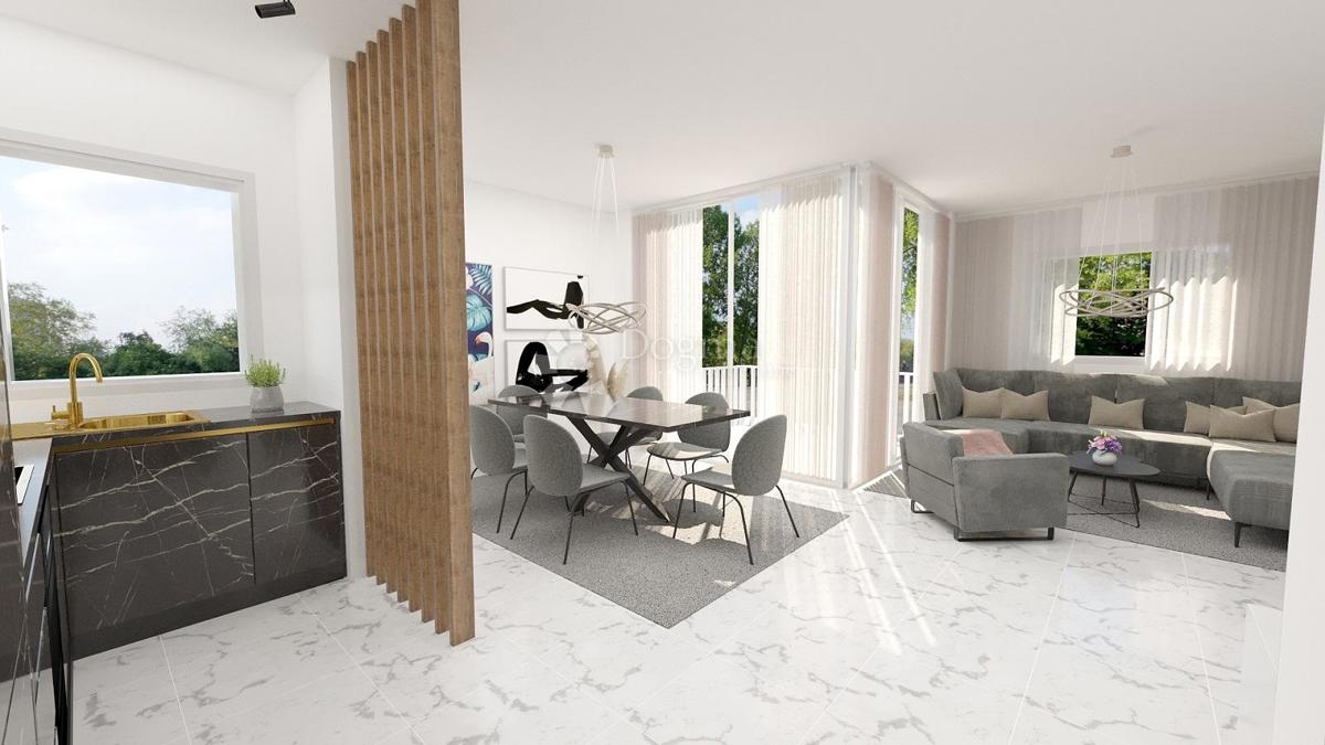 WOHNUNG „A“ – 1. STOCK SÜD In erstklassiger Lage nahe dem Zentrum von Poreč stehen Luxuswohnungen mit wunderschönem Blick auf das nur 900 m entfernte Meer zum Verkauf. Die Wohnung „A“ mit einer Gesamtfläche von 121,5 m2 (Nettoreduzierte Fläche von 91 m2