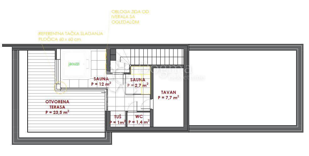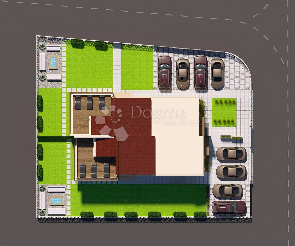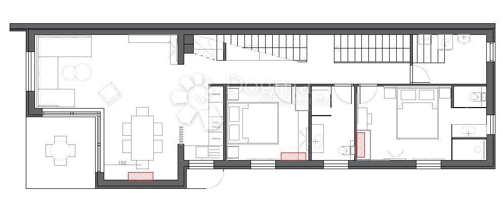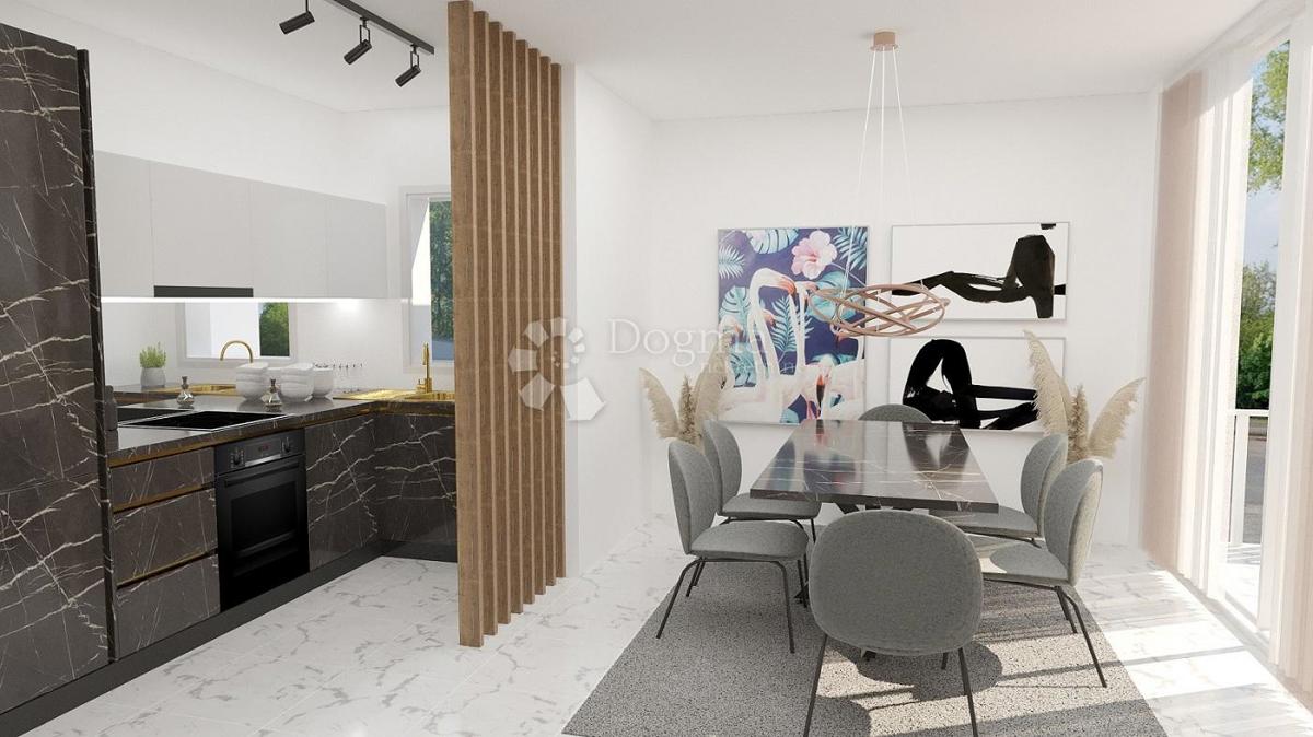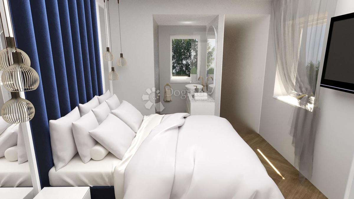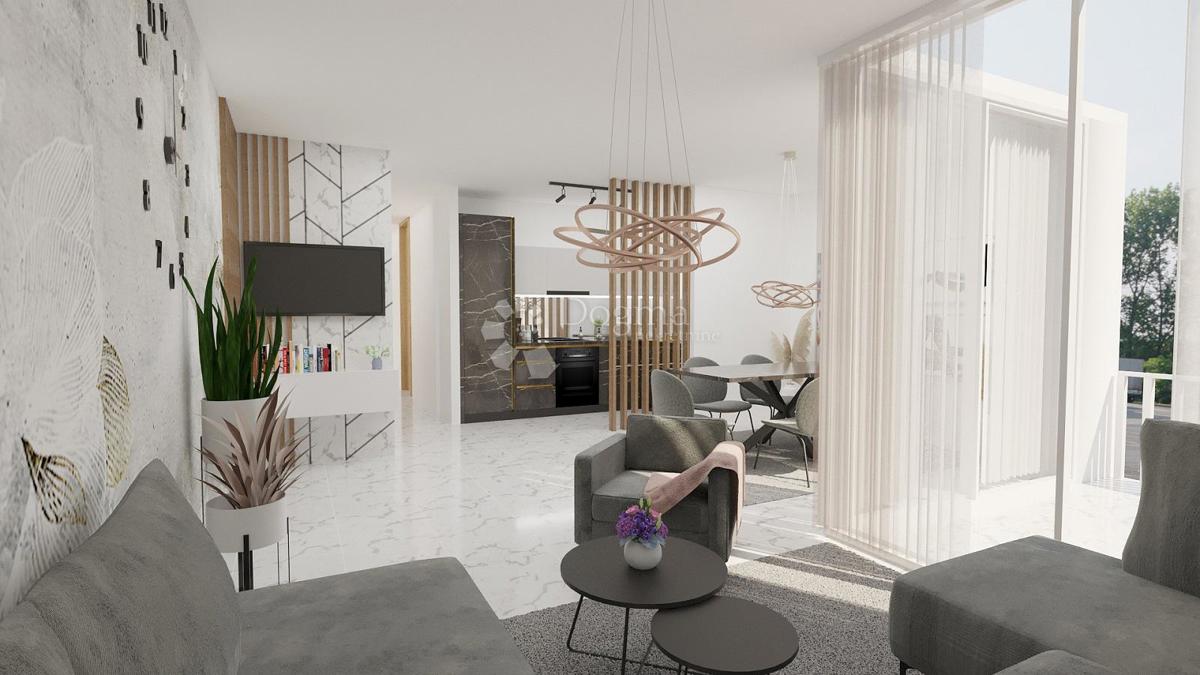 WOHNUNG „A“ – 1. STOCK SÜD In erstklassiger Lage nahe dem Zentrum von Poreč stehen Luxuswohnungen mit wunderschönem Blick auf das nur 900 m entfernte Meer zum Verkauf. Die Wohnung „A“ mit einer Gesamtfläche von 121,5 m2 (Nettoreduzierte Fläche von 91 m2