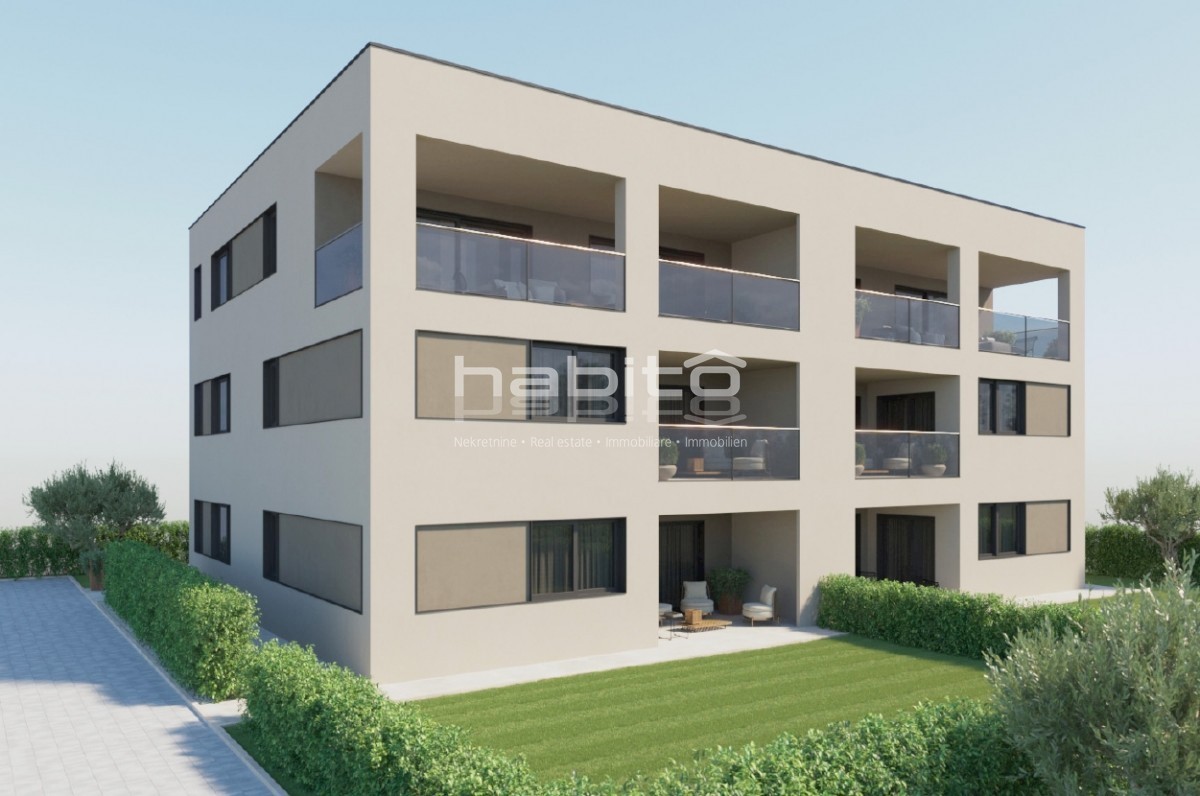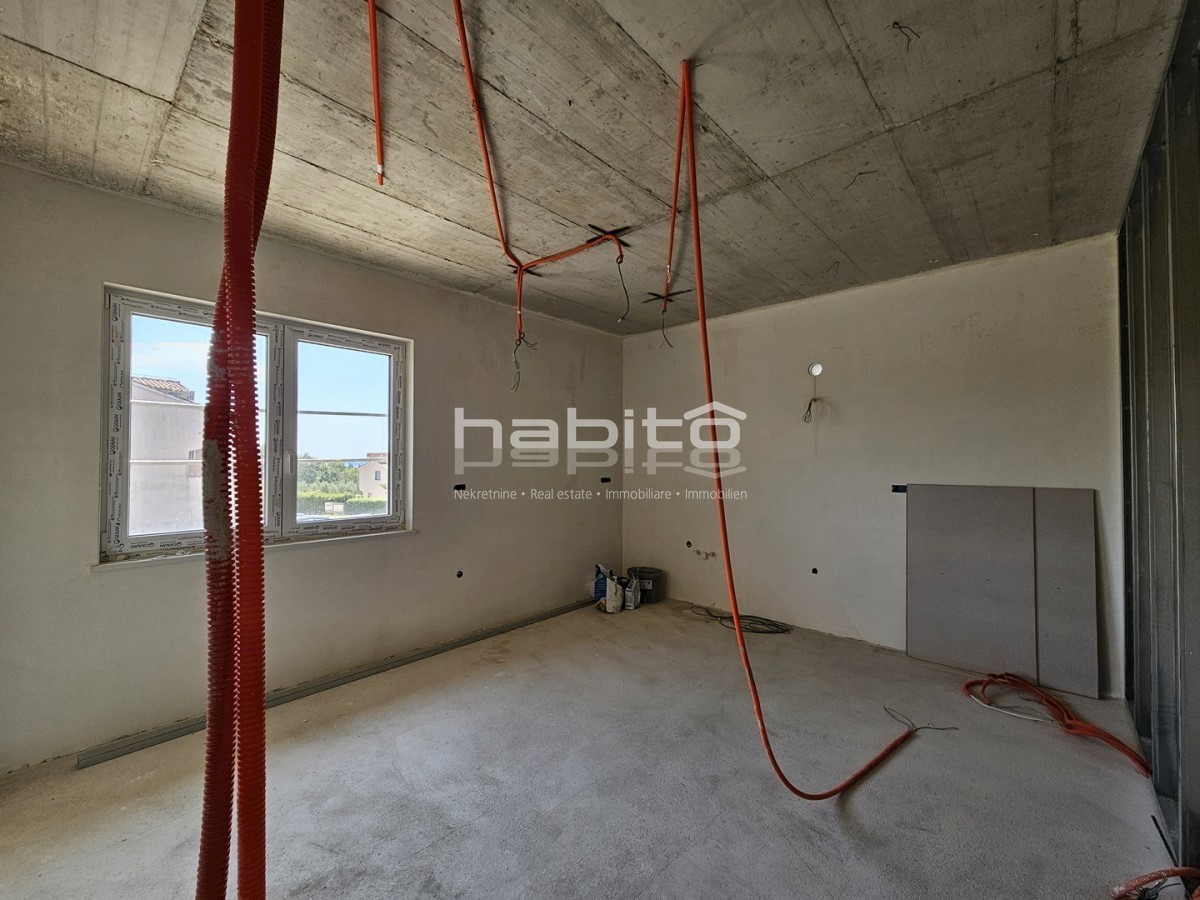 Wohnung zum Verkauf im erste Stock eines neu gebauten Gebäudes in Porec, 2 km vom Zentrum und nur 600 m vom Strand und einer Handvoll Restaurants und begleitenden Einrichtungen entfernt. Die Wohnung von 110 m2 verfügt über drei Schlafzimmer mit eigenen Bä