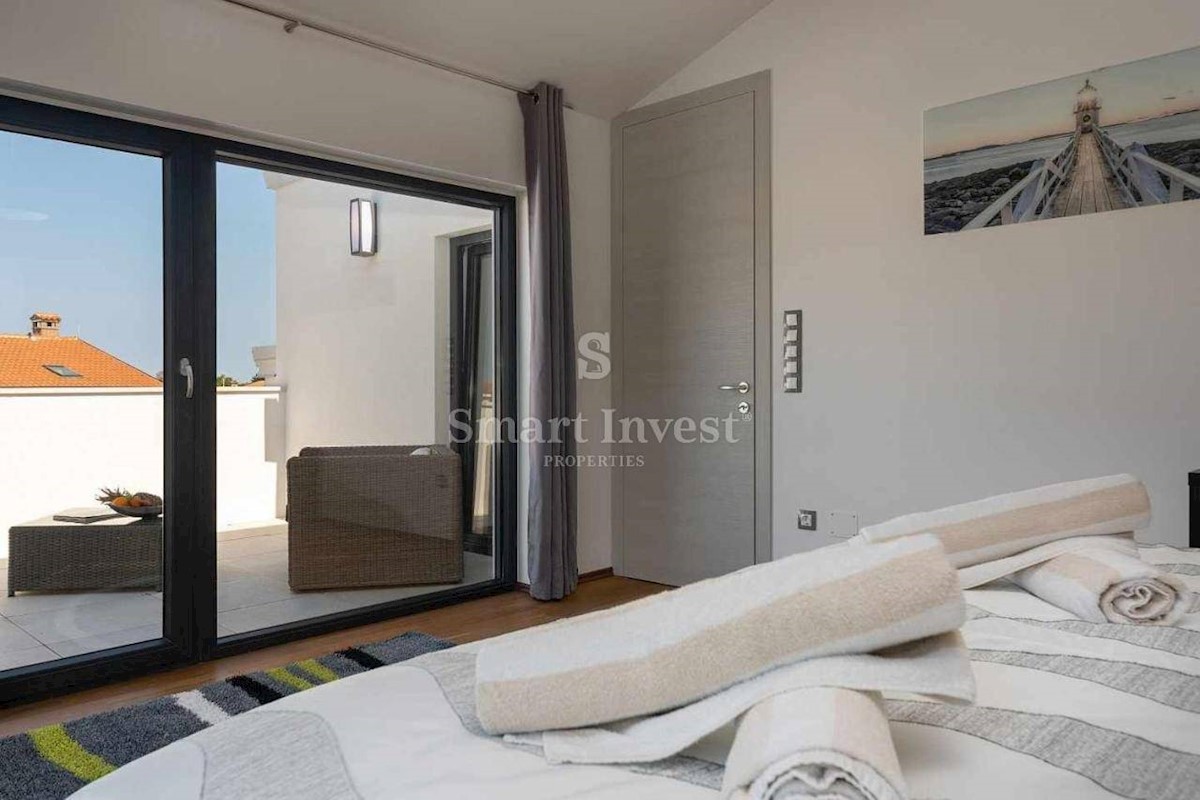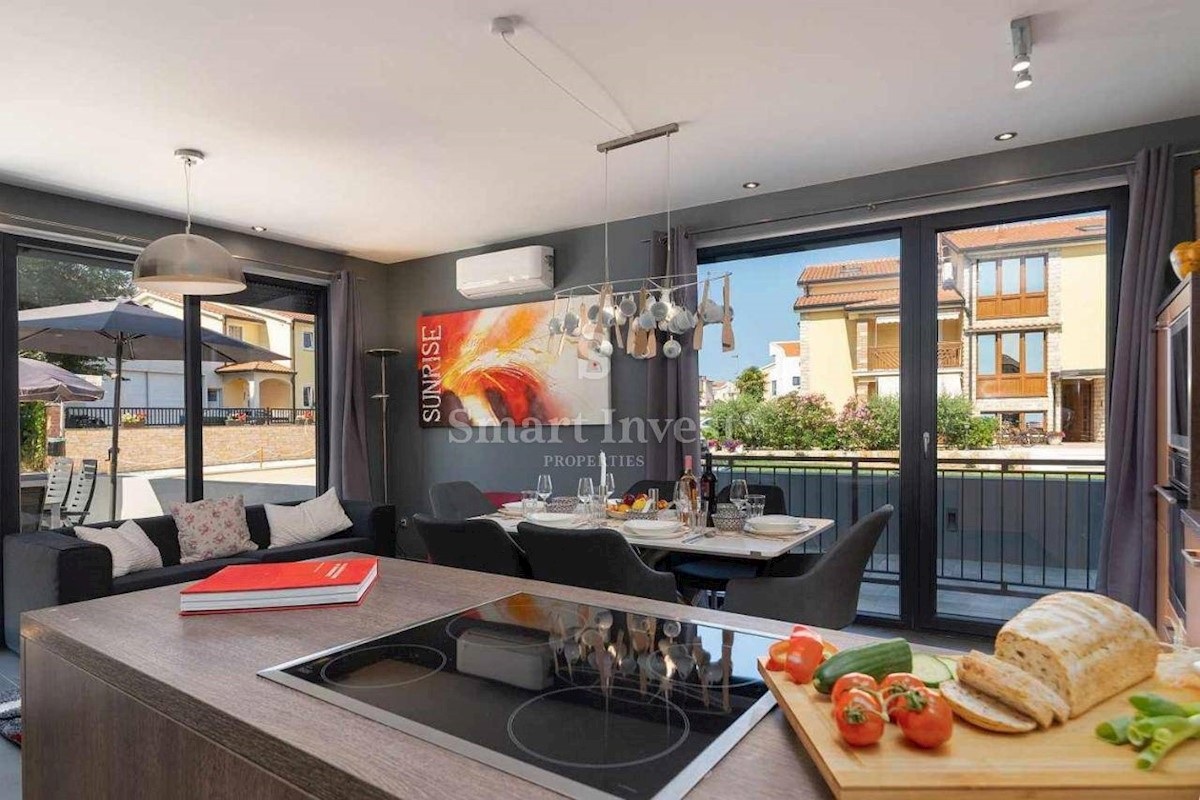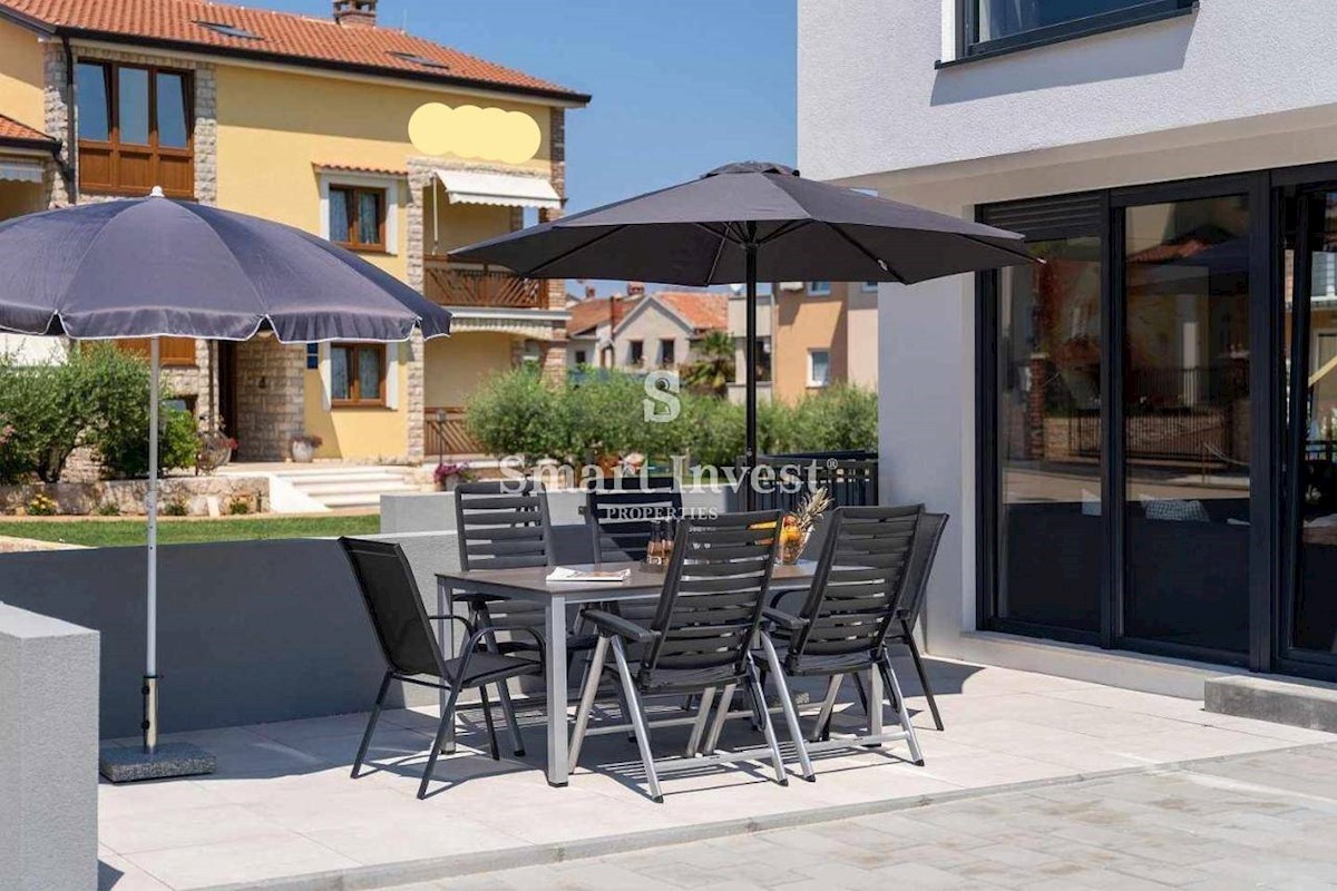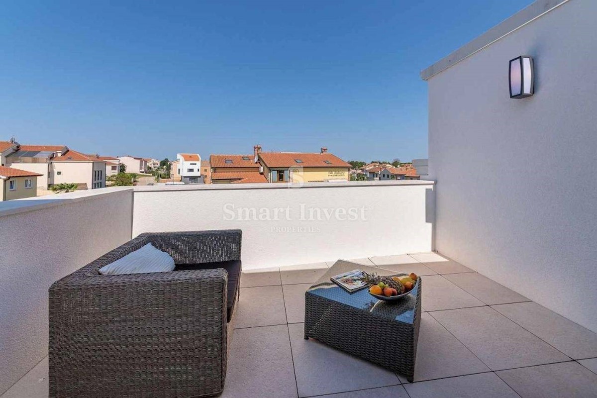 ISTRIEN - POREČ Nähe, Zum Verkauf steht eine 3-stöckige Wohnung mit Terrasse und privatem Parkplatz in einer großartigen Lage, nur 250 Meter vom Meer entfernt. Das neu errichtete Wohnhaus besteht aus nur 5 Wohnungen mit jeweils eigenem Eingang und Stellp
