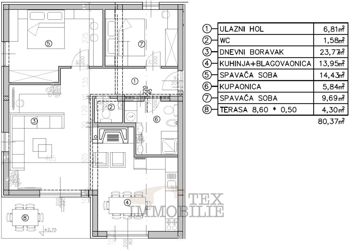 Die Wohnung befindet sich in ausgezeichneter, ruhiger Lage nahe dem Zentrum von Poreč, nur 1500 Meter von den ersten Stränden entfernt. Die Wohnung befindet sich im ersten Stock eines Mehrfamilienhauses und besteht aus einem Wohnzimmer, einer Küche und ei