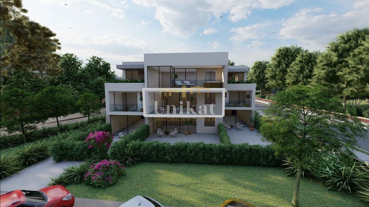Wohnung in einem neuen Wohngebäude in Poreč, nur 1,5 km vom Meer und Strand entfernt. Die Nettofläche der Wohnung wird 74 m2 betragen und mit den Terrassen 85 m2. Sie wird aus Eingangsbereich, Wohnzimmer mit Küche und Essbereich, drei Schlafzimmern, einem