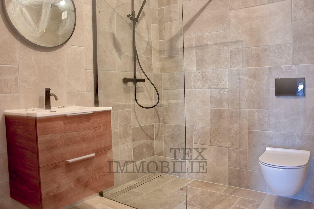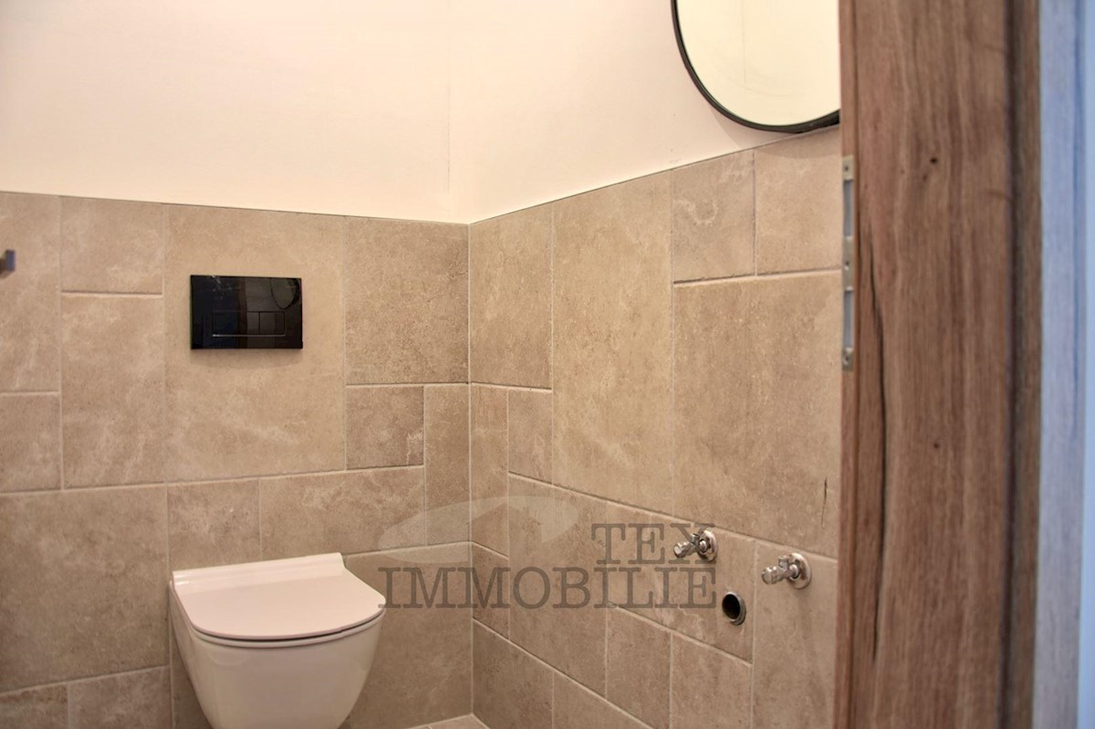 Die zweistöckige Wohnung eines wunderschönen istrischen Steinhauses stellt eine ideale Kombination aus traditionellem Charme und modernem Komfort dar. Dieses 65,50 m² große Apartment liegt nur 5 km vom Zentrum von Poreč entfernt und verfügt über ein Wohnz